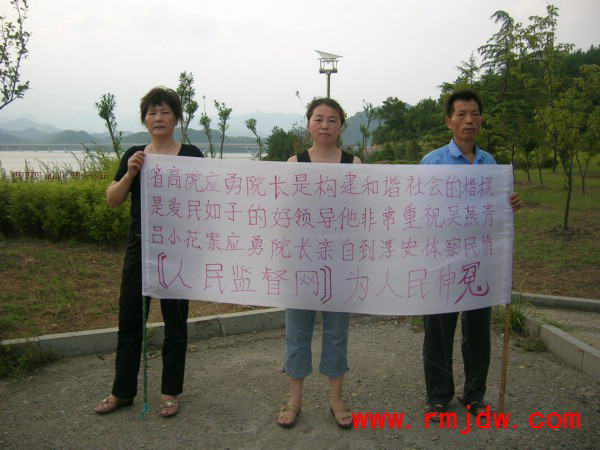 我的子女告诉我,你们的《人民监督网》因报道淳安县、临安县的司法腐败,网站遭到多次封杀,这些丧尽天良的腐败法官与杭州市公安局内部的腐败官员相互勾结,在杭州市公安网上公开为腐败法官喊冤叫屈。你们《人民监督网》至今没有屈服,我这个抗日老兵佩服你们的精神,支持你们反腐败。