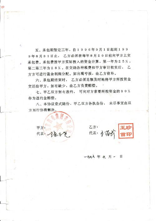 在王苗珍的强烈抗议下,1998年10月14日,上虞市政府组织镇政府、群众代表、百机集团承包人等召开了协调会议,确认王苗珍与百机集团原协议解除,将企业以300万元转资给王苗珍经营,同年签订了资产转让意向书。