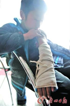 小伟左手还包着厚厚的石膏,他已有20多天没上学了。记者何波 摄 资料图片