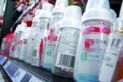 昨日,在位于亦庄的沃尔玛山姆会员店,货架上销售的瓶身材质为PC的奶瓶。 本报记者 吴江 摄 本报讯 婴儿塑料奶瓶的隐患又让家长们开始揪心了。欧盟认为含双酚A奶瓶会诱发性早熟