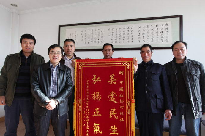 2010年12月20日,甘肃古浪尘肺病农民工代表周俊山、马俊山、李发金三人到本报再次寻求帮助,并向本报送来两面锦旗致谢。