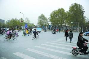 这是被撞学生李小林(化名)发生车祸的邢台市中兴西大街与育才路交叉口,记者拍摄的角度即监控摄像头拍摄的角度(4月20日摄)。
