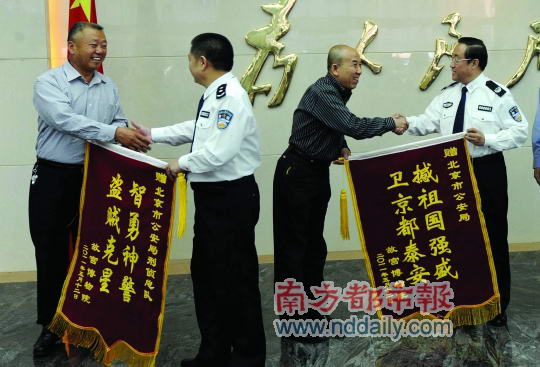 5月13日,故宫博物院向北京市公安局赠送锦旗。有网友指出,“撼祖国强盛”中的“撼”应为“捍”,但故宫回应称没写错字。