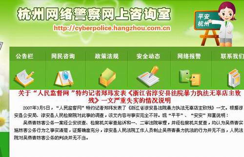 背景:人民监督网》于2007年3月5日、4月2日分别刊登了“浙江淳安法院暴力执法无辜店主致残”,“内幕:<>浙江淳安法官炮制多起冤假错案”等文章。
