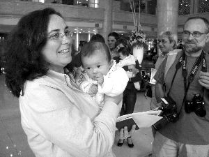 5月23日,来自西班牙的一对夫妇在南昌一宾馆大堂和刚领养的女婴在一起。本报记者 涂重航 摄