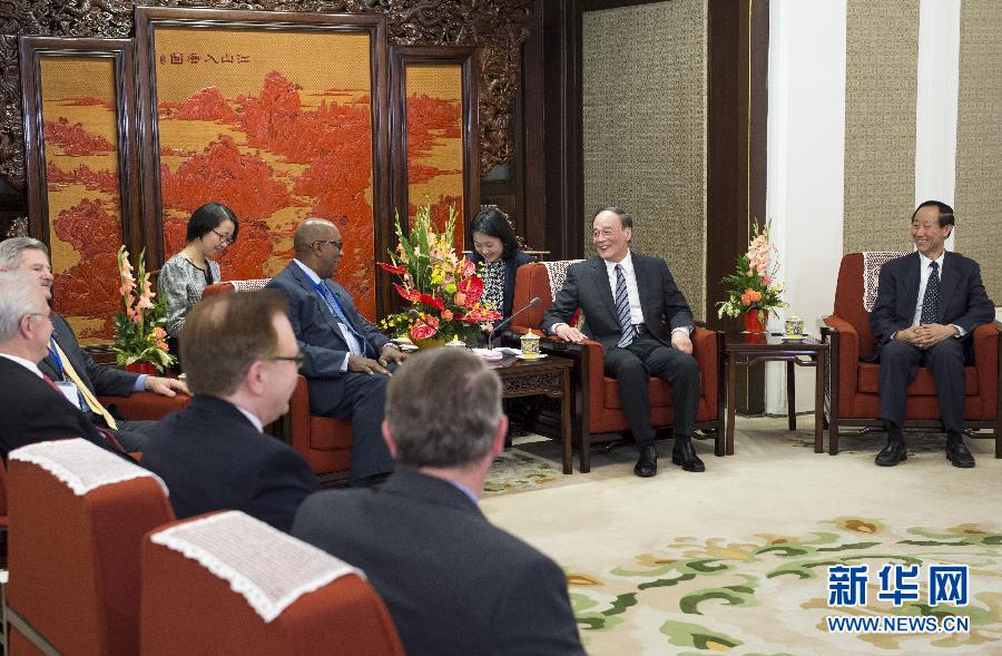 5月7日,中共中央政治局常委、中央纪委书记王岐山在北京中南海紫光阁会见参加第八届中美政党高层对话的美国民主党和共和党代表团。新华社记者王晔摄